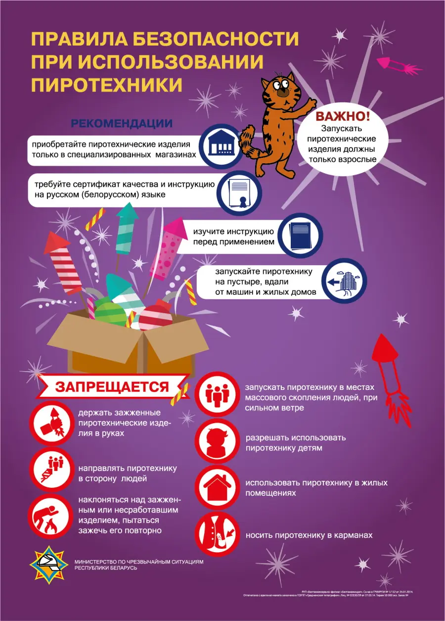 - Использование: Не направлять на людей, не носить в карманах, не поджигать фитиль у лица. Подходить к уже зажженным фейерверкам не ближе 15 метров.