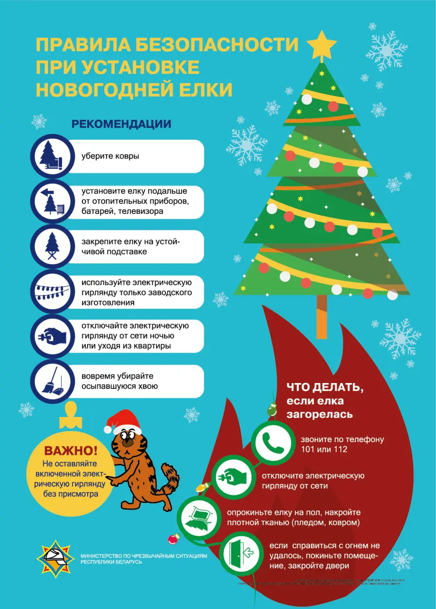- Украшение: Используйте невоспламеняющиеся игрушки. Забудьте про вату под елкой и свечи. Проверяйте гирлянды перед использованием, не оставляйте их включенными на ночь или когда уходите.