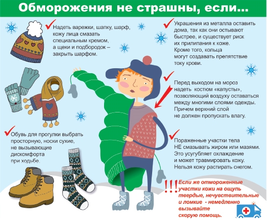 - Собираясь в сильный мороз на улицу, надевай теплые, но свободные вещи. В плотных сапогах или тугих перчатках морозу легче добраться до кожи.